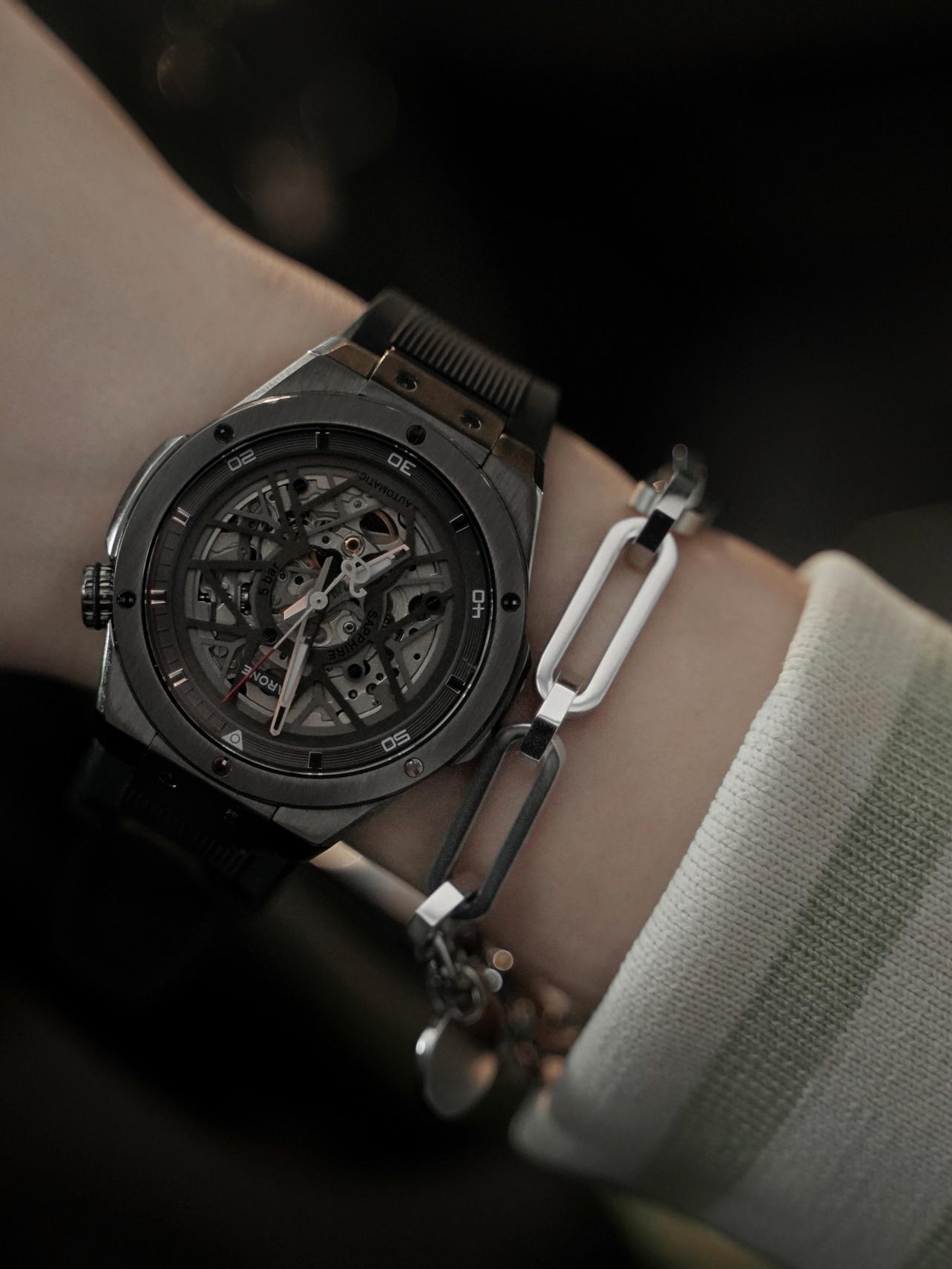 經(jīng)典的RARONE雷諾表雙子星腕表,結(jié)合當(dāng)下流行的解構(gòu)元素,用來點(diǎn)綴整體穿搭上,可以讓造型變得沒那么沉悶,既可以休閑又可以正式,不規(guī)則幾何線條切割鏤空表盤,不僅富有設(shè)計(jì)感個性十足,更增強(qiáng)表盤的立體層次感,雙面鏤空設(shè)計(jì)搭配對稱的“Y”,蘊(yùn)含機(jī)械手表運(yùn)動的美感,機(jī)械魅力盡在腕間掌握。進(jìn)口機(jī)械機(jī)心,精鋼原色表殼,走時精準(zhǔn)又凸顯腕表品質(zhì)。