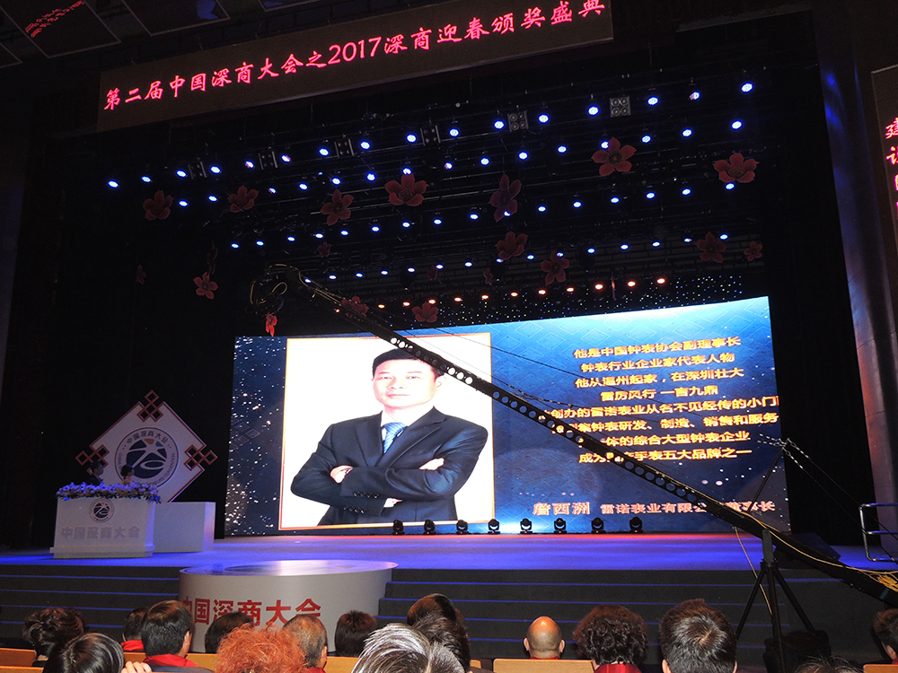 第二屆深商大會(huì)之深商迎春頒獎(jiǎng)盛典在深圳保利劇院盛大舉行,雷諾表業(yè)董事長(zhǎng)詹西洲先生兩度上臺(tái)領(lǐng)獎(jiǎng),將素有“深商奧斯卡”之稱的重量級(jí)大獎(jiǎng):第九屆“深商風(fēng)云人物”及“中國深商大會(huì)特別貢獻(xiàn)獎(jiǎng)”收入囊中。