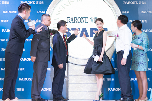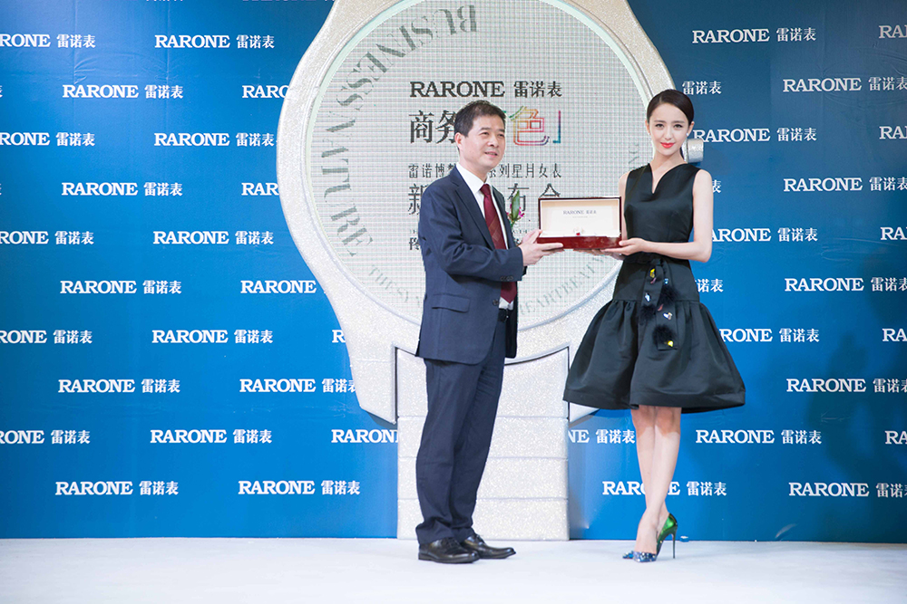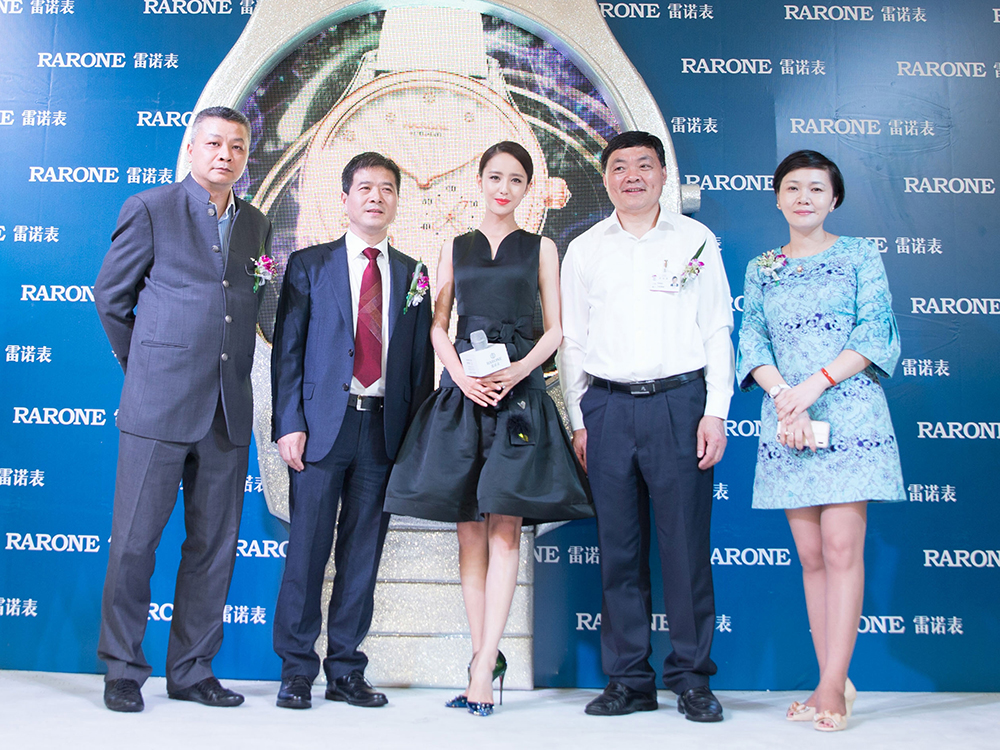 在新品發(fā)布環(huán)節(jié),雷諾表業(yè)總經(jīng)理詹江洲先生,哈工大首創(chuàng)科技股份有限公司副總經(jīng)理、寧波第二百貨商店總經(jīng)理,全國勞動模范黃炎水先生,中國國際鐘表展創(chuàng)始人兼籌委會主席,深圳市鐘表行業(yè)協(xié)會執(zhí)行會長朱舜華先生以及深圳市雷諾表業(yè)副總經(jīng)理高湘蓮女士和佟麗婭一同為2015雷諾博鰲·鼎智系列星月女表新品揭幕。即日起,雷諾新品星月女表將正式亮相全國各地的雷諾專柜。隨后,雷諾表業(yè)總經(jīng)理詹江洲先生將剛剛發(fā)布的星月女表贈予佟麗婭并親手為她佩戴。